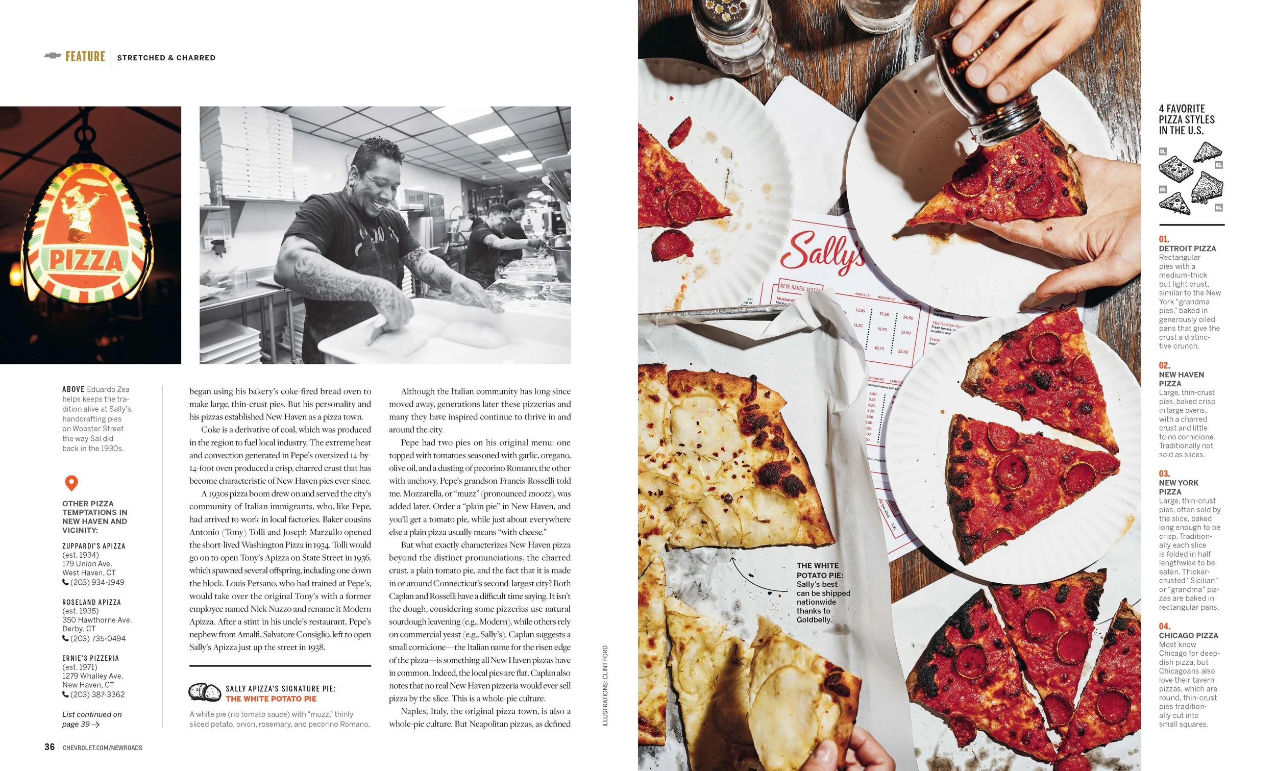 local favorites on Wooster Street: Frank Pepe’s, Sally’s, and Modern.